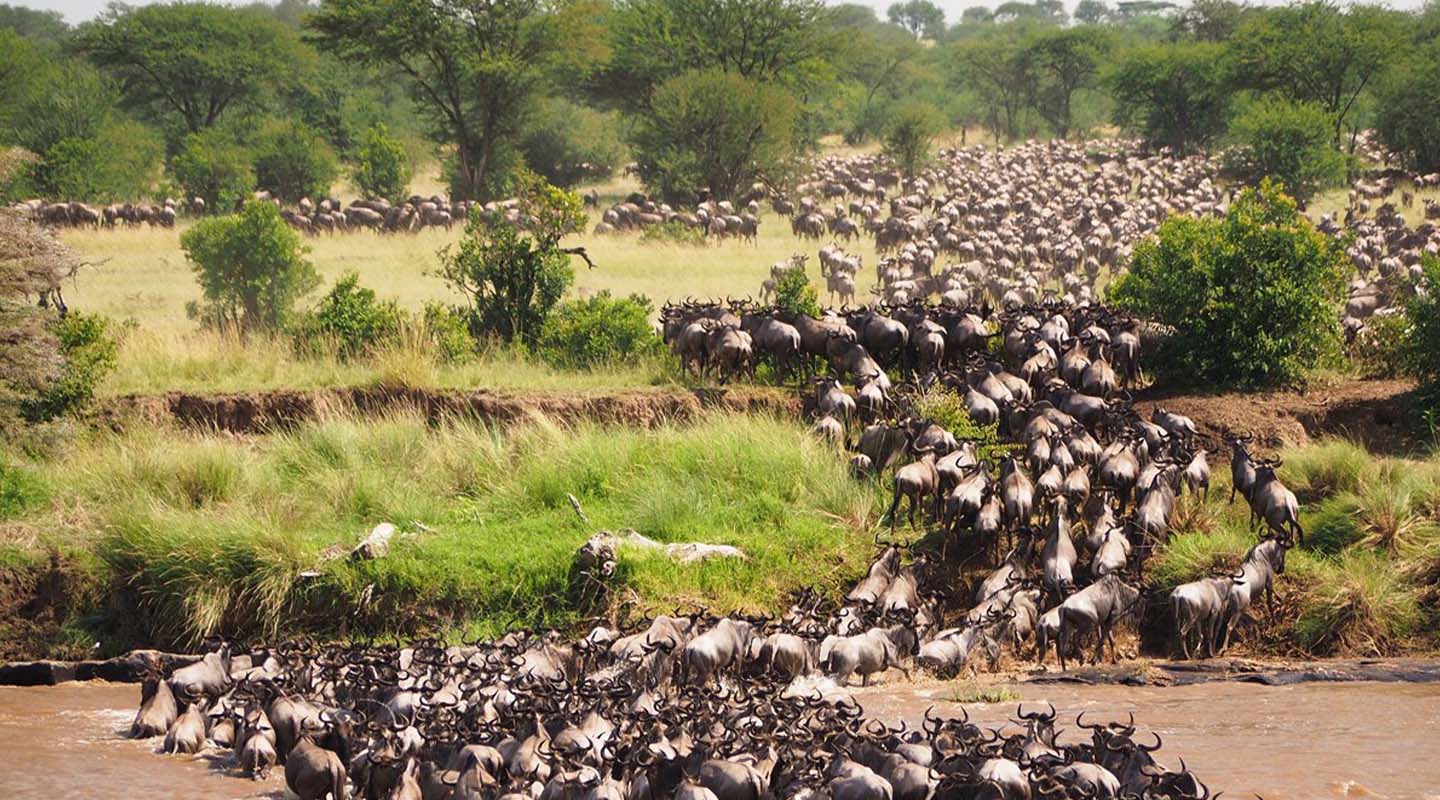 One of the biggest highlights is the Great Wildebeest Migration in the Serengeti, where over a million wildebeest and zebras move in search of fresh grazing. This natural wonder includes dramatic river crossings and intense predator action, offering unforgettable moments.